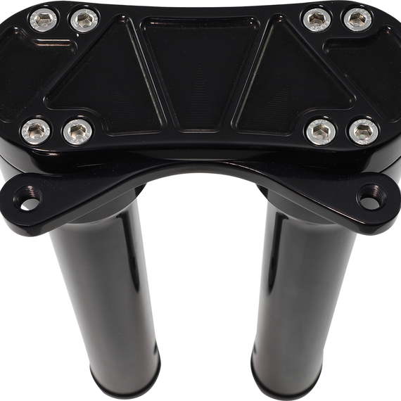 • The uniquely designed 8-bolt common top clamp keep the handle bars secure