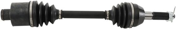 Caracteristicas: Axles are 20% stronger than OEM, 50% stronger than competing aftermarket axles and last 12 times longer than competing axles Axles feature eight precision ball bearings with cage and race sizes that are up to 35% larger for greatly increased CV joint strength Manufactured in facilities that are certified and meet the ISO 9001 quality manufacturing standard Designed with a larger-than-stock chromoly axle shaft and low-profile allow clamps