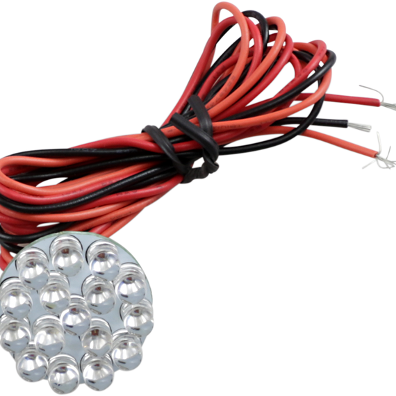 Caracteristicas: Wide-angle super-bright LEDs Each cluster has three wires (low, high, ground) and can be used as single or dual intensity 1" diameter features 16 LEDs 1.25" diameter features 25 LEDs 1.8" diameter features 48 LEDs