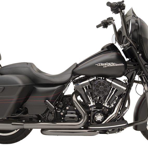 Caracteristicas: 1.75” to 1.875” high-flow 16-gauge stepped primary headers with an obround 1.875” crossover 4”-diameter, 16-gauge absorptive mufflers with 2” inlets and removable billet tips 2.50,” 220°, 16-gauge heat shields 18mm and 12mm O2 bungs welded into the primaries Heavy-duty, AccuSeal® reaction-block header-to-muffler clamps included Removable insert for ultimate sound control