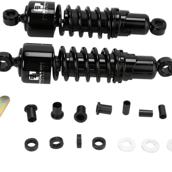 Caracteristicas: Designed specifically for Harley models The 412's simple, durable design makes them a cost effective improvement to your motorcycle's suspension performance A five position cam style spring load preload adjuster lets you easily dial in your ride Some or all shocks listed have TüV approval. Refer to most recent TüV certificate for current listing All shocks are measured center-of-eyelet to center-of-eyelet. When installing shocks on 1986-2015 XL models, it may be necessary to modify or space the chain/belt guard to allow proper clearance. A shock which is slightly longer than stock may alter the head angle slightly and provide somewhat quicker steering. A shock which is slightly shorter than stock may alter the head angle slightly and provide somewhat slower steering. Heavy Duty Applications are recommended for bikes that are operated at or near the manufacturer's maximum load rating over 50% of the time. Before purchasing or attempting to install shocks that are different than the OEM length, confirm that your wheel travel can be altered without causing clearance issues, such as swingarm/axle to exhaust contact as well as chain/belt guard or tire contact.