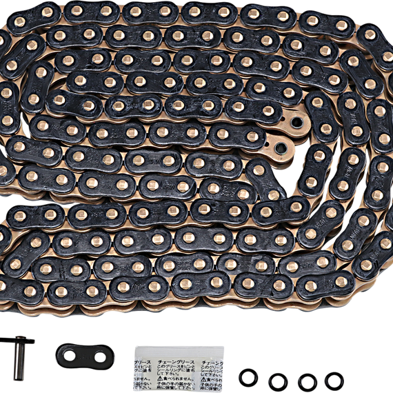 Caracteristicas: For competition and OEM replacement Super/ultra strong; 520 series has tensile strength of 9,400 lbs., 530 series tensile strength of 11,100 lbs. Minimize clearance between plates Improved stiffness and weight Includes rivet-style master link