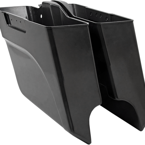Caracteristicas: Injection-molded ABS bags provide superior strength and rigidity Angled-cut design gives the ultimate custom look and provides maximum cornering clearance Saddlebags are stretched 5" longer than stock to cover the muffler front to back and give that stretched look Bags have cutouts for dual exhaust applications; block-off plates available separately for single or shorty exhaust applications Accept OEM lids and hardware (sold separately) Right- and left-side bags and block-off plates sold separately