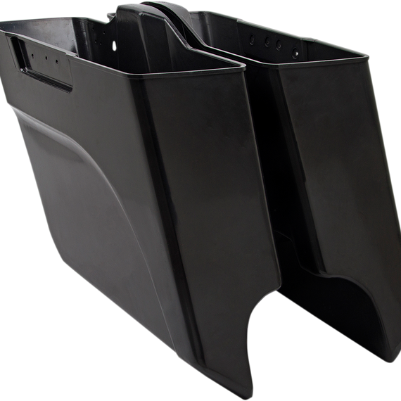 Caracteristicas: Injection-molded ABS saddlebags constructed from OEM-grade materials for superior strength and rigidity 6" longer and 2" lower than Ness Angled extended saddlebags Featuring an angled-cut design for a custom look and maximum cornering clearance Saddlebags have cut outs for dual exhaust applications Accepts OEM lids and hardware (sold separately)