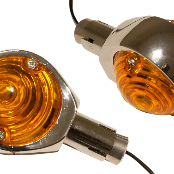 Caracteristicas: European-style bar end lights clean up overall appearance Amber lenses 12V single filament bulbs