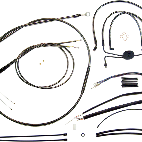 • Kits include throttle and idle cables of throttle-by-wire extensions, clutch cable or hydraulic clutch line, brake lines, copper crush washers, hardware, and any necessary switch wiring of turn signal extension