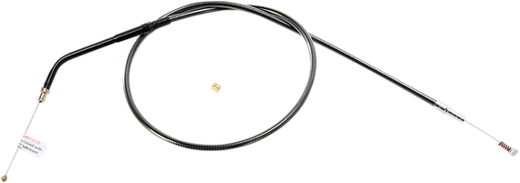 Caracteristicas: Braid color and weave match on all Magnum control cables and brake lines All fittings are polished and plated Crystal clear outer jacket offers exceptional protection against scuffing paint or chrome and will never discolor All cables are made with anti-friction inner liners, nylon adjuster inserts and are factory lubricated for smooth, consistent, long lasting operation Meets or exceeds all OE specifications for fitment, construction and endurance Assembled in the U.S.A. Length given is the length of the outer housing only, excluding the elbow Cables will also fit late style Mikuni carbs