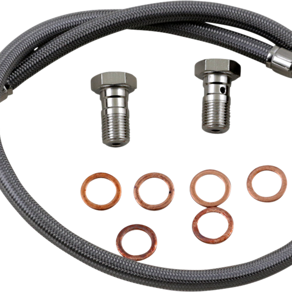 Caracteristicas: Requires less pressure at the lever, allowing the rider to use less force while stopping the bike faster and with better feel Fittings come from the factory pre-positioned but can swivel 180° if necessary to make the installation process easier Include a clear outer coating which protects the bike from scratches and the lines from humidity Complete with all necessary banjo bolts and washers and ready to install