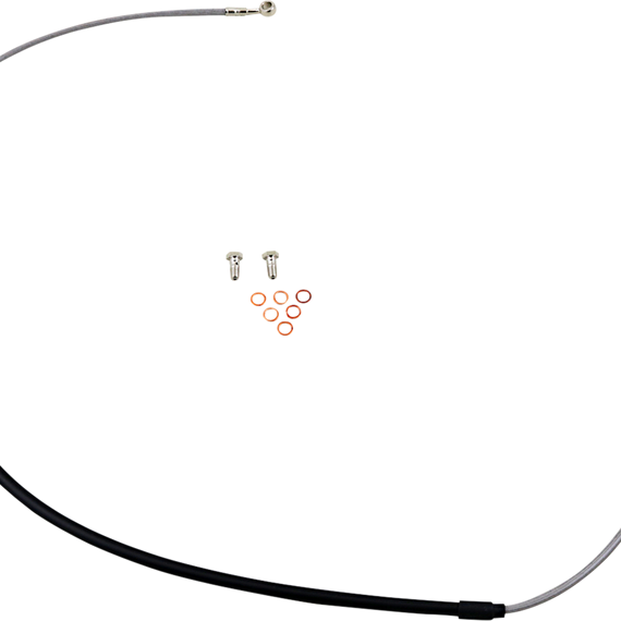 Caracteristicas: 64 braided strands of steel around the line, making the line have zero expansion at any time - better than any other braided line Requires less pressure at the lever, allowing the rider to use less force while stopping the bike faster and with better feel Fittings come from the factory pre-positioned but can swivel 180° if necessary to make the installation process easier Include a clear outer coating which protects the bike from scratches and the lines from humidity Complete with all necessary banjo bolts and washers Ready to install