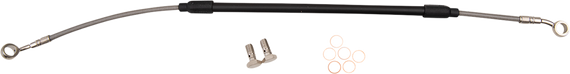 Caracteristicas: 64 braided strands of steel around the line, making the line have zero expansion at any time - better than any other braided line Requires less pressure at the lever, allowing the rider to use less force while stopping the bike faster and with better feel Fittings come from the factory pre-positioned but can swivel 180° if necessary to make the installation process easier Include a clear outer coating which protects the bike from scratches and the lines from humidity Complete with all necessary banjo bolts and washers Ready to install