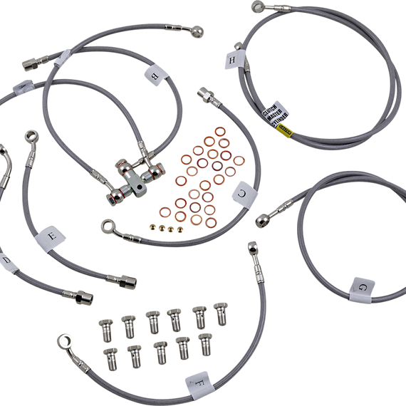 Caracteristicas: Requires less pressure at the lever, allowing the rider to use less force while stopping the bike faster and with better feel Fittings come from the factory pre-positioned but can swivel 180° if necessary to make the installation process easier Include a clear outer coating which protects the bike from scratches and the lines from humidity Complete with all necessary banjo bolts and washers and ready to install