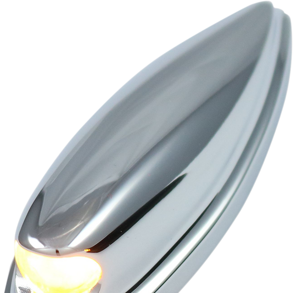 Caracteristicas: Feature our Super Bright amber LEDs inside a slightly reshaped Turn Signal Eliminator housing Housings are 6061 T-6 billet aluminum construction Low-profile design measures 3" L x 3/4" W x 3/4" H Easy installation