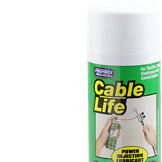 Caracteristicas: Cable Life Minus 70° is a general purpose and cable lubricant Also for carbs, ignition locks and steering mechanisms Lubricates and rustproofs with a non-drying film Kit includes: one 6.25-ounce aerosol can of Cable Life lubricant, and one special fitting for lubricating cables Cable luber tool lets you inject lube directly into cables while they're still in place