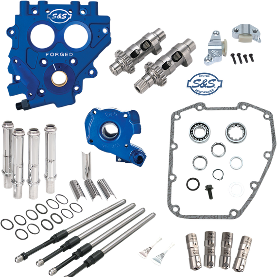 • Replaces stock oil pump, cam support plate, cams, chain tensioners, and tappets with all-new, premium U.S.-made S&S components