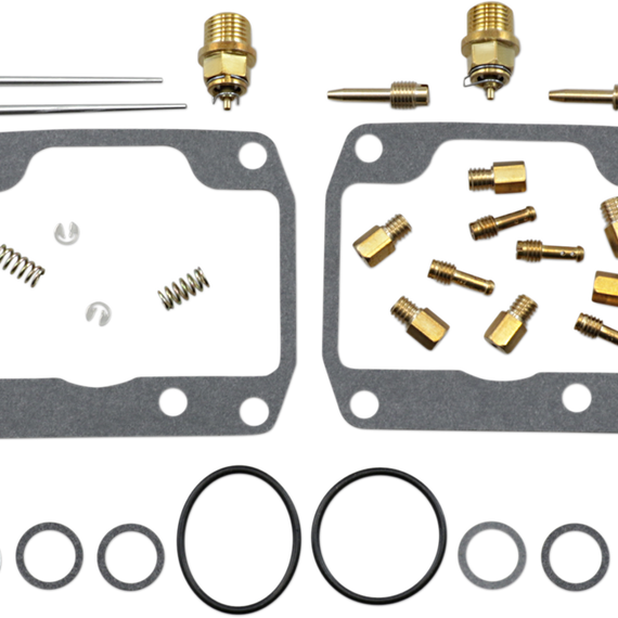 Caracteristicas: Kit includes all necessary O-rings, gaskets, jets, needle, mixture screw, float bowl screws, float valve needle and seat (needle jet and other pressed-in jets are not included in kit) NBR rubber material is used on all O-rings and rubber gaskets; NBR has excellent resistance to the ethanol used in today's fuels Applications that use paper float bowl gaskets are upgraded to High Performance Interference Gasket material Models with multiple carburetors include components to repair all carburetors OEM jet sizes and slide needles are included in the kit