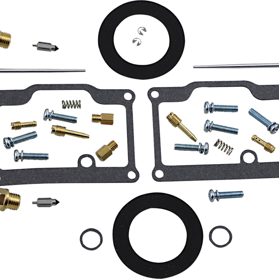 • Kit includes all necessary O-rings, gaskets, jets, needle, mixture screw, float bowl screws, float valve needle and seat (needle jet and other pressed-in jets are not included in kit)