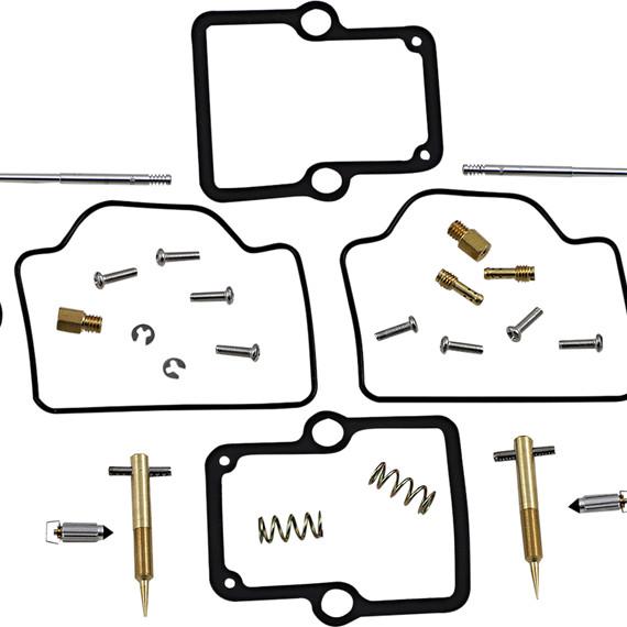 Caracteristicas: Kit includes all necessary O-rings, gaskets, jets, needle, mixture screw, float bowl screws, float valve needle and seat (needle jet and other pressed-in jets are not included in kit) NBR rubber material is used on all O-rings and rubber gaskets; NBR has excellent resistance to the ethanol used in today's fuels Applications that use paper float bowl gaskets are upgraded to High Performance Interference Gasket material Models with multiple carburetors include components to repair all carburetors OEM jet sizes and slide needles are included in the kit