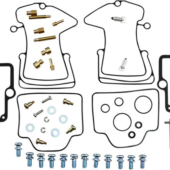 Caracteristicas: Kit includes all necessary O-rings, gaskets, jets, needle, mixture screw, float bowl screws, float valve needle and seat (needle jet and other pressed-in jets are not included in kit) NBR rubber material is used on all O-rings and rubber gaskets; NBR has excellent resistance to the ethanol used in today's fuels Applications that use paper float bowl gaskets are upgraded to High Performance Interference Gasket material Models with multiple carburetors include components to repair all carburetors OEM jet sizes and slide needles are included in the kit