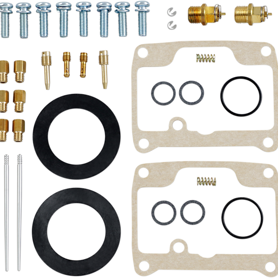 Caracteristicas: Kit includes all necessary O-rings, gaskets, jets, needle, mixture screw, float bowl screws, float valve needle and seat (needle jet and other pressed-in jets are not included in kit) NBR rubber material is used on all O-rings and rubber gaskets; NBR has excellent resistance to the ethanol used in today's fuels Applications that use paper float bowl gaskets are upgraded to High Performance Interference Gasket material Models with multiple carburetors include components to repair all carburetors OEM jet sizes and slide needles are included in the kit