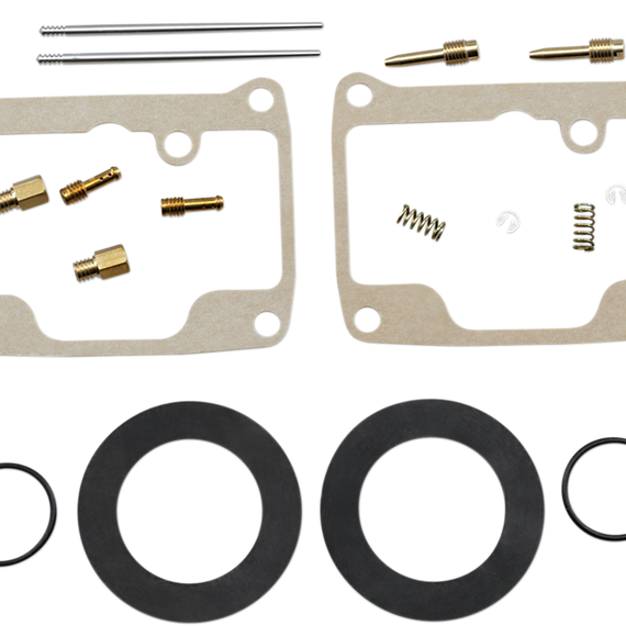 Caracteristicas: Kit includes all necessary O-rings, gaskets, jets, needle, mixture screw, float bowl screws, float valve needle and seat (needle jet and other pressed-in jets are not included in kit) NBR rubber material is used on all O-rings and rubber gaskets; NBR has excellent resistance to the ethanol used in today's fuels Applications that use paper float bowl gaskets are upgraded to High Performance Interference Gasket material Models with multiple carburetors include components to repair all carburetors OEM jet sizes and slide needles are included in the kit