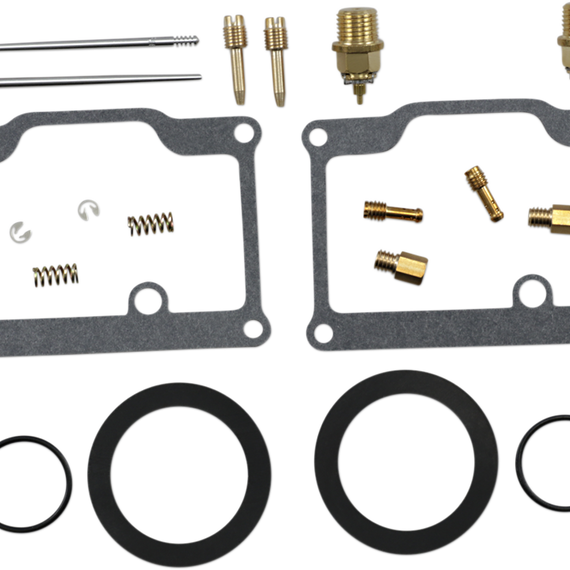 Caracteristicas: Kit includes all necessary O-rings, gaskets, jets, needle, mixture screw, float bowl screws, float valve needle and seat (needle jet and other pressed-in jets are not included in kit) NBR rubber material is used on all O-rings and rubber gaskets; NBR has excellent resistance to the ethanol used in today's fuels Applications that use paper float bowl gaskets are upgraded to High Performance Interference Gasket material Models with multiple carburetors include components to repair all carburetors OEM jet sizes and slide needles are included in the kit