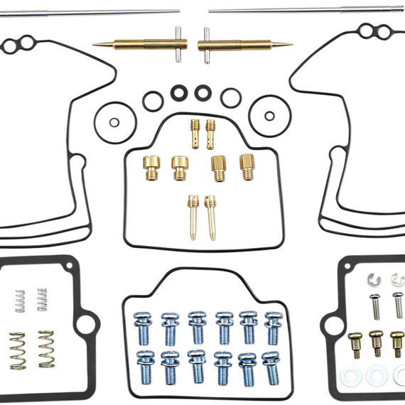 Caracteristicas: Kit includes all necessary O-rings, gaskets, jets, needle, mixture screw, float bowl screws, float valve needle and seat (needle jet and other pressed-in jets are not included in kit) NBR rubber material is used on all O-rings and rubber gaskets; NBR has excellent resistance to the ethanol used in today's fuels Applications that use paper float bowl gaskets are upgraded to High Performance Interference Gasket material Models with multiple carburetors include components to repair all carburetors OEM jet sizes and slide needles are included in the kit