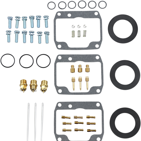 Caracteristicas: Kit includes all necessary O-rings, gaskets, jets, needle, mixture screw, float bowl screws, float valve needle and seat (needle jet and other pressed-in jets are not included in kit) NBR rubber material is used on all O-rings and rubber gaskets; NBR has excellent resistance to the ethanol used in today's fuels Applications that use paper float bowl gaskets are upgraded to High Performance Interference Gasket material Models with multiple carburetors include components to repair all carburetors OEM jet sizes and slide needles are included in the kit