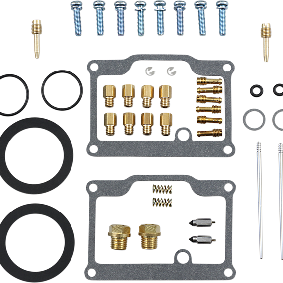 • Kit includes all necessary O-rings, gaskets, jets, needle, mixture screw, float bowl screws, float valve needle and seat (needle jet and other pressed-in jets are not included in kit)