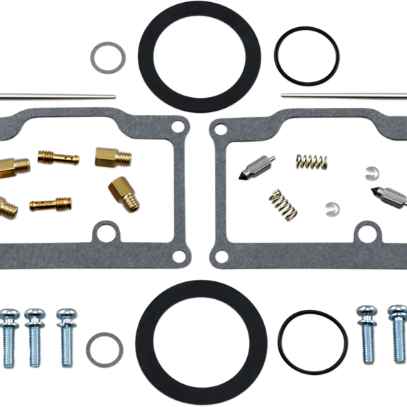 Caracteristicas: Kit includes all necessary O-rings, gaskets, jets, needle, mixture screw, float bowl screws, float valve needle and seat (needle jet and other pressed-in jets are not included in kit) NBR rubber material is used on all O-rings and rubber gaskets; NBR has excellent resistance to the ethanol used in today's fuels Applications that use paper float bowl gaskets are upgraded to High Performance Interference Gasket material Models with multiple carburetors include components to repair all carburetors OEM jet sizes and slide needles are included in the kit