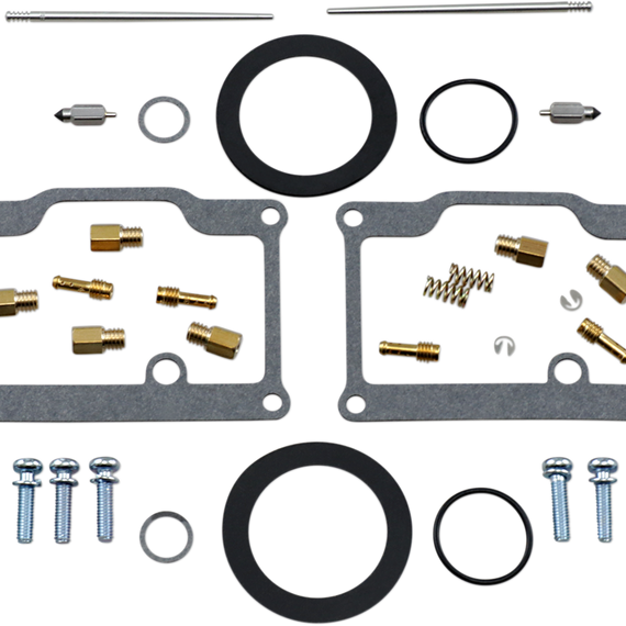 • Kit includes all necessary O-rings, gaskets, jets, needle, mixture screw, float bowl screws, float valve needle and seat (needle jet and other pressed-in jets are not included in kit)