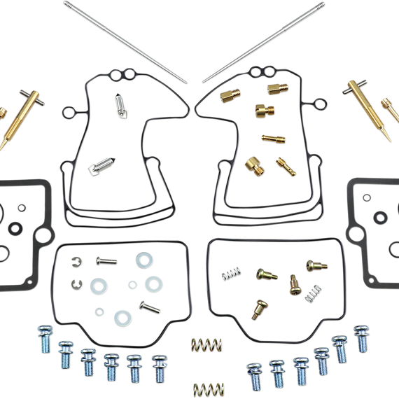 Caracteristicas: Kit includes all necessary O-rings, gaskets, jets, needle, mixture screw, float bowl screws, float valve needle and seat (needle jet and other pressed-in jets are not included in kit) NBR rubber material is used on all O-rings and rubber gaskets; NBR has excellent resistance to the ethanol used in today's fuels Applications that use paper float bowl gaskets are upgraded to High Performance Interference Gasket material Models with multiple carburetors include components to repair all carburetors OEM jet sizes and slide needles are included in the kit