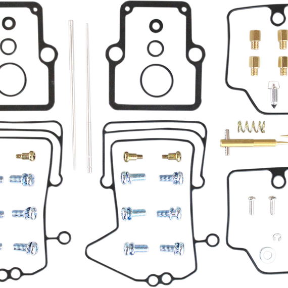 Caracteristicas: Kit includes all necessary O-rings, gaskets, jets, needle, mixture screw, float bowl screws, float valve needle and seat (needle jet and other pressed-in jets are not included in kit) NBR rubber material is used on all O-rings and rubber gaskets; NBR has excellent resistance to the ethanol used in today's fuels Applications that use paper float bowl gaskets are upgraded to High Performance Interference Gasket material Models with multiple carburetors include components to repair all carburetors OEM jet sizes and slide needles are included in the kit