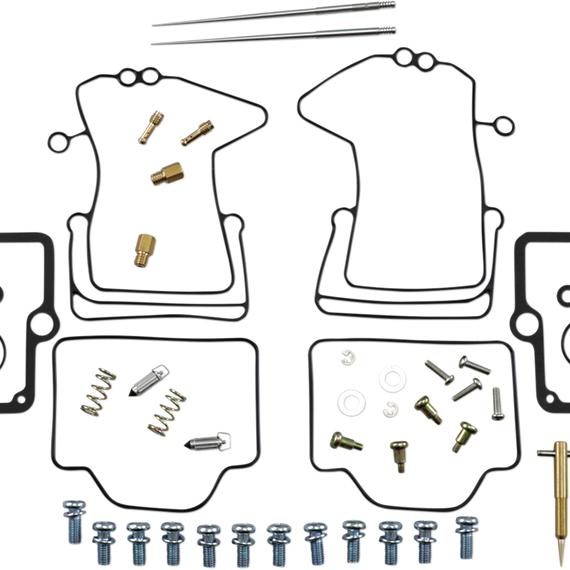 • Kit includes all necessary O-rings, gaskets, jets, needle, mixture screw, float bowl screws, float valve needle and seat (needle jet and other pressed-in jets are not included in kit)