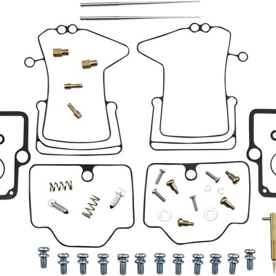 • Kit includes all necessary O-rings, gaskets, jets, needle, mixture screw, float bowl screws, float valve needle and seat (needle jet and other pressed-in jets are not included in kit)