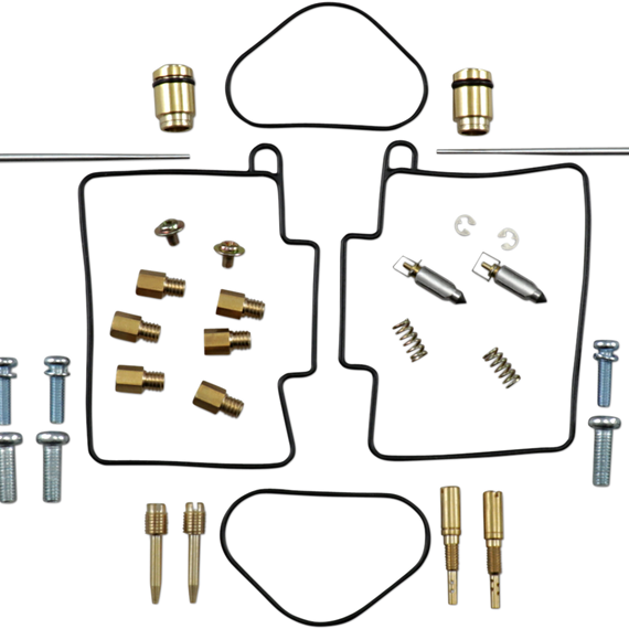 Caracteristicas: Kit includes all necessary O-rings, gaskets, jets, needle, mixture screw, float bowl screws, float valve needle and seat (needle jet and other pressed-in jets are not included in kit) NBR rubber material is used on all O-rings and rubber gaskets; NBR has excellent resistance to the ethanol used in today's fuels Applications that use paper float bowl gaskets are upgraded to High Performance Interference Gasket material Models with multiple carburetors include components to repair all carburetors OEM jet sizes and slide needles are included in the kit
