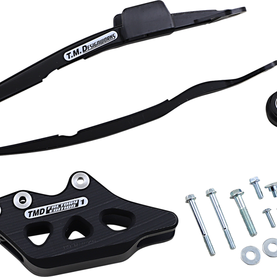 Caracteristicas: The kit includes front slider, lower frame pad & FE #2 rear guide with replaceable wear pad. Noise dampening pad system lowers chain slap noise. A special chain guidance backing plate keeps the chain constantly centered to improve suspension. The lower Powerlip frame pad last longer but more importantly lowers surface drag.