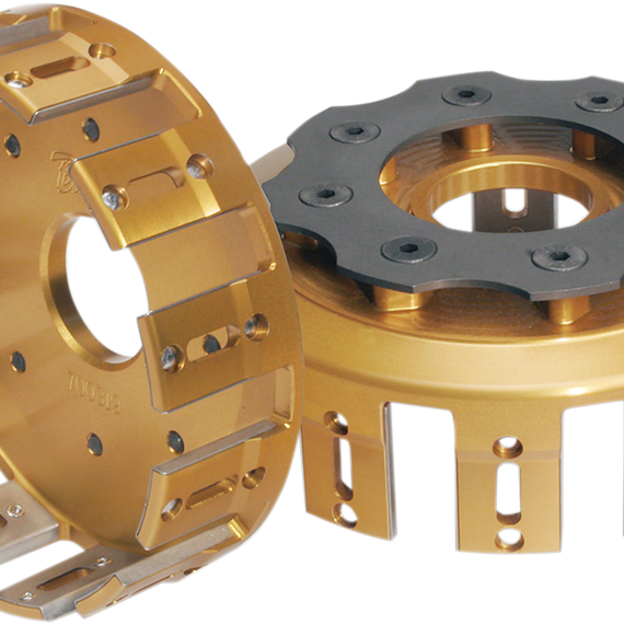 Caracteristicas: Baskets are CNC-machined from 2024 T-3 billet aluminum and plates from 6061 T-6 billet aluminum for increased durability and extended clutch life Baskets utilize stainless steel drive inserts where the clutch plate tabs make contact with the basket; grade-eight fasteners are also used to attach backing plate Made in the U.S.A.