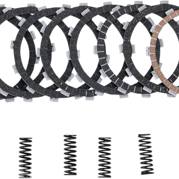 Caracteristicas: Get all the performance without all the fade or slip Friction plates are ready to fit - no need to pre-soak in oil Designed to ensure ultra-smooth power delivery More durable than OEM clutch plates High-heat friction material for fade-free performance Clutch springs are shot-peened for maximum life, heat-treated and precision-wound using only the finest chrome silicon Springs are individually designed for each application to ensure easy operation and great feel at the lever Steel friction plates are precision-made using exacting tolerances Plates are heat-treated for maximum life Will not muddy or contaminate oil