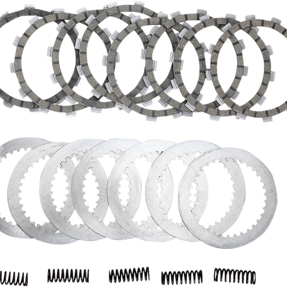 Caracteristicas: Designed to outperform any OEM or aftermarket clutch DPK kits include friction plates, steel drive plates and clutch springs, except when OEM clutch includes reusable diaphragm spring DPK clutch kits come in a foam-lined hard plastic case that protects clutch components from being damaged prior to installation Case can be used to store and transport parts, tools or other items after clutch is installed Come ready to race - no need to presoak plates in oil Designed to ensure ultrasmooth power delivery Exclusive high-heat friction materials for fade-free performance Friction compounds designed to suit off-road and dual-sport bikes More durable than OEM plates Steel drive plates Steel plates won't expand, do not fade or promote clutch swell like stock aluminum plates Long lasting - up to 300% more life than stock plates Increased weight over stock plates adds flywheel effect for aiding starting and traction Will not muddy or contaminate oil Clutch springs Precision-wound using the finest chrome silicone wire Heat-treated and shot-peened for maximum life Individually designed to ensure no slippage with super-strong spring rates Improve feel and ease of clutch operation