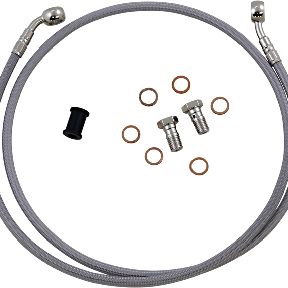 Caracteristicas: Stainless Steel lines are typically the first upgrade you should make Stock rubber lines will break down and expand, causing a spongy feel or worse. Steel lines eliminate expansion which results in consistent feel and performance Made with only DuPont virgin grade PTFE (Polytetrafluoroethylene) inner core 64 strand braid Includes all mounting components, extra washers, and line end labeling, and bike specific installations R&D and manufacturing done in the US