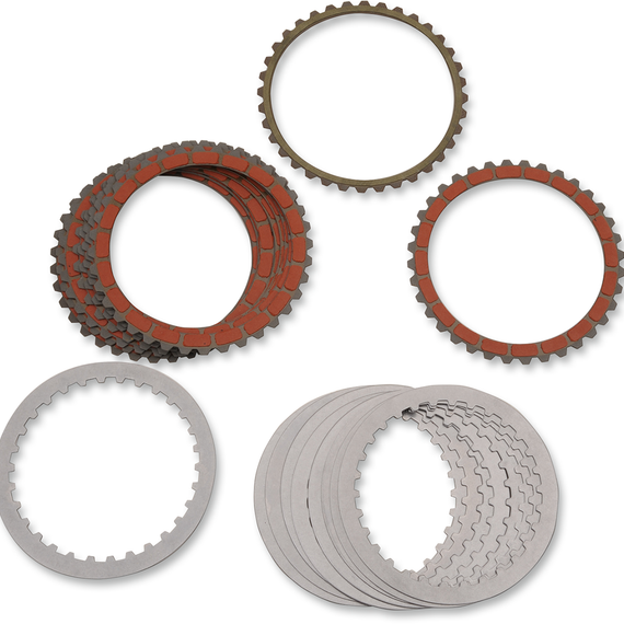 Caracteristicas: Friction plates feature carbon fiber material for improved clutch feel and performance Includes ten frictions, nine steels and one damper spring Made in the U.S.A.