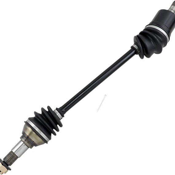 Caracteristicas: Precision machined and heat treated solid chromoly steel center shaft, cages, races and ball bearings up to 35% stronger Highest quality, most reliable, and toughest constant velocity axles on the market Manufactured in a state-of-the-art ISO9001 and TS16949 certified factory Induction heat treated joints packed with high performance moly grease Designed to withstand the most rigorous conditions and terrain High-strength spring steel retaining clips (where required) Torture tested to failure to ensure maximum durability Exceed OEM quality in fit, form and function Secure stainless steel dust boot clamps Fully assembled for easy installation Precision rolled splines and threads