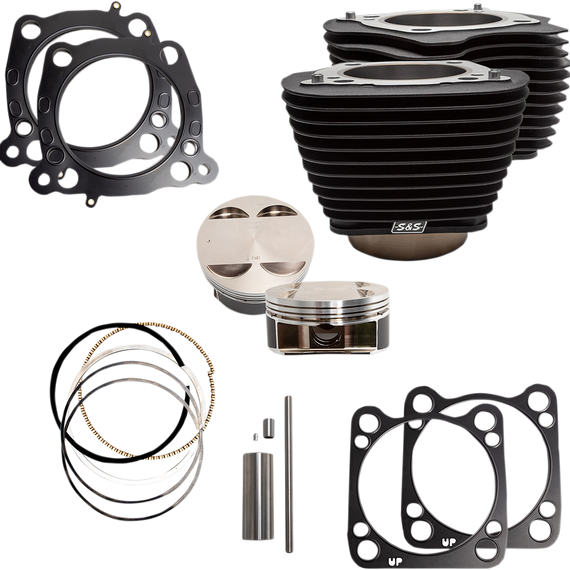 Caracteristicas: The Big Bore kit yields excellent results with stock cylinder heads Easy installation: no need to bore or split existing cases, just swap the cylinders Cylinders are constructed from premium aluminum castings with cast-in iron liners Kits include cylinders, pistons, rings and gaskets (head, base and exhaust) Black or silver powder-coat finish Made in the U.S.A. This project requires a skilled technician. It is the responsibility of the person assembling the parts to check all clearances and assembly specifications.