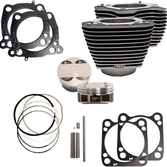 Caracteristicas: The Big Bore kit yields excellent results with stock cylinder heads Easy installation: no need to bore or split existing cases, just swap the cylinders Cylinders are constructed from premium aluminum castings with cast-in iron liners Kits include cylinders, pistons, rings and gaskets (head, base and exhaust) Black or silver powder-coat finish Made in the U.S.A. This project requires a skilled technician. It is the responsibility of the person assembling the parts to check all clearances and assembly specifications.