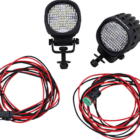 Caracteristicas: Durable polycarbonate lenses and aluminum housings with large cooling fins to dissipate heat Integrated over-heating, over-voltage and polarity protection 60mm x 60mm lamps (lens dimensions) put out a true/effective 750 lumens per light and 5700K color temp Universal compatibility with standard 12v electrical systems (each lamp draws 2.3 Amps) Kit includes two lamps with sealed connectors and wiring pigtails, and integrated mount brackets with fasteners IP69K rated for total dust ingress and high-pressure washing and/or steam cleaning Not DOT compliant