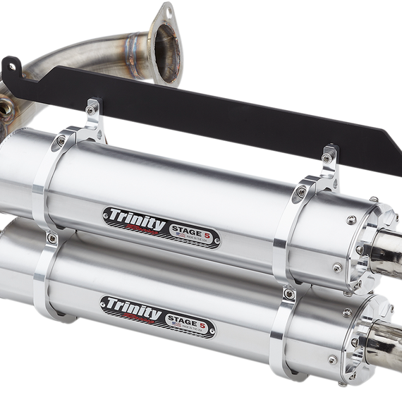 Caracteristicas: 304 brushed stainless steel mid pipe Dual aluminum mufflers Fully Tig Welded 6061 Billet Muffler Clamps Oxygen sensor bung USFS approved spark arrestors Significant horsepower and torque gains Made in the USA