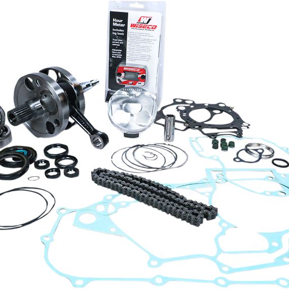 Caracteristicas: Includes all top and bottom-end components for a complete engine rebuild 4-stroke kits include a premium forged piston kit with stock compression ratio and a high-quality cam chain 2-stroke kits include a Pro-Lite¶© piston Crankshaft and rod assembly designed and inspected to assure durability Kit includes main bearings, seals, gaskets, an hour meter and bracket