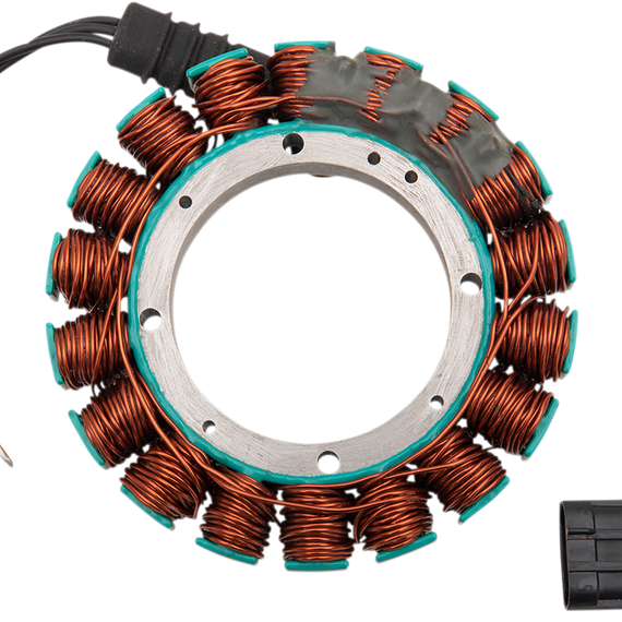 Caracteristicas: Unique narrow stator fit into Softail/Dyna/FLT primary cases as used by most custom builders and the voltage regulator bolts on the stock location without any frame modifications Ideal for fuel-injected engines and bikes with overdrive-type transmissions Made in the U.S.A.