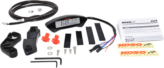 Caracteristicas: Developed by Enduro riders and made especially for them, the EX-02 is the perfect solution for all Enduro applications Lightweight, compact and using a convenient speed sensor bracket, it can be quickly installed on most dirt bikes Features all the basic functions such as speed, odometer, trip meter, hour meter, voltage, stop-watch and clock Another great feature to this meter is the illuminated background with adjustable brightness that allows a good visibility of the display whether on a bright sunny day or at night time Speedometer display range: 0 to 360 km/h (0 to 225 MPH), display unit: km/h or MPH Display internal less than 0.5 second Odometer display range: 0 to 99,999 km (mile); resets automatically after 99,999 km (mile); display unit: 1 km (mile) Tripmeter display range: 0 to 9999.9 km (mile); resets automatically after 9999.9 km (mile); display unit: 0.1 km (mile) Hour meter display range: 0 to 9999.9 hours; resets automatically after 9999.9 hours; display unit: 0.1 hour Clock 12/24H mode Volt meter 8 to 18V Inner battery level Display range: 4 levels Power LCD: Internal CR2032 battery Meter size: 120mm W x 40mm L x 23mm H