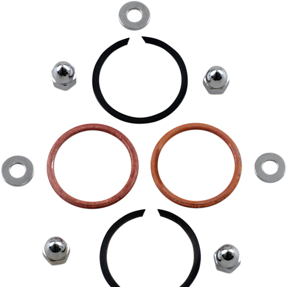 Caracteristicas: Kits include gaskets and heavy-duty flange hex nuts or chrome acorn nuts with washers Made in the U.S.A. by James Gaskets